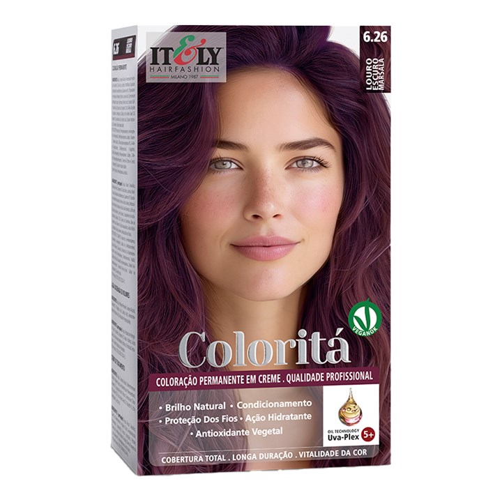 Itely Coloritá Louro Escuro Marsala - Kit Bisnaga Coloração nº 6.26 50g + Emulsão Reveladora 75ml + Creme de Tratamento Pós Coloração 15g