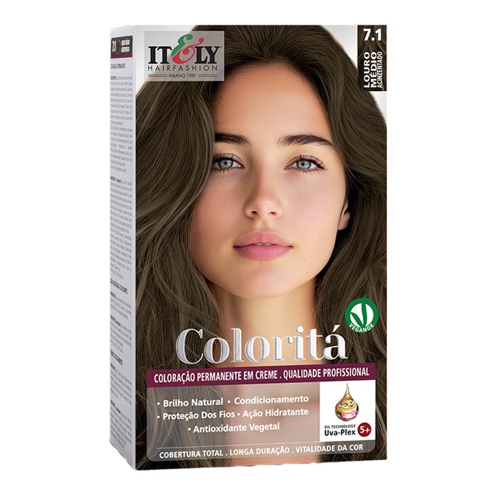 Itely Coloritá Louro Médio Acinzentado - Kit Bisnaga Coloração nº 7.1 50g + Emulsão Reveladora 75ml + Creme de Tratamento Pós Coloração 15g