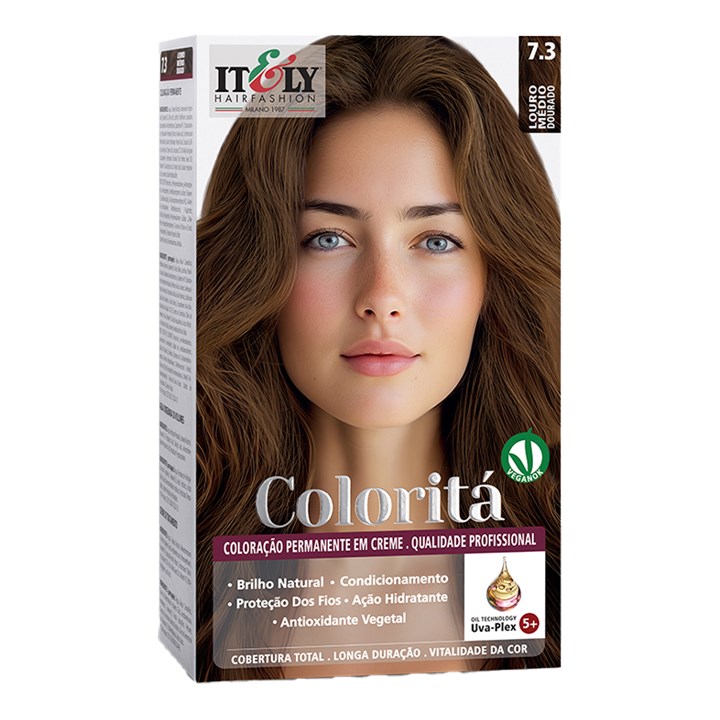 Itely Coloritá Louro Médio Dourado - Kit Bisnaga Coloração nº 7.3 50g + Emulsão Reveladora 75ml + Creme de Tratamento Pós Coloração 15g