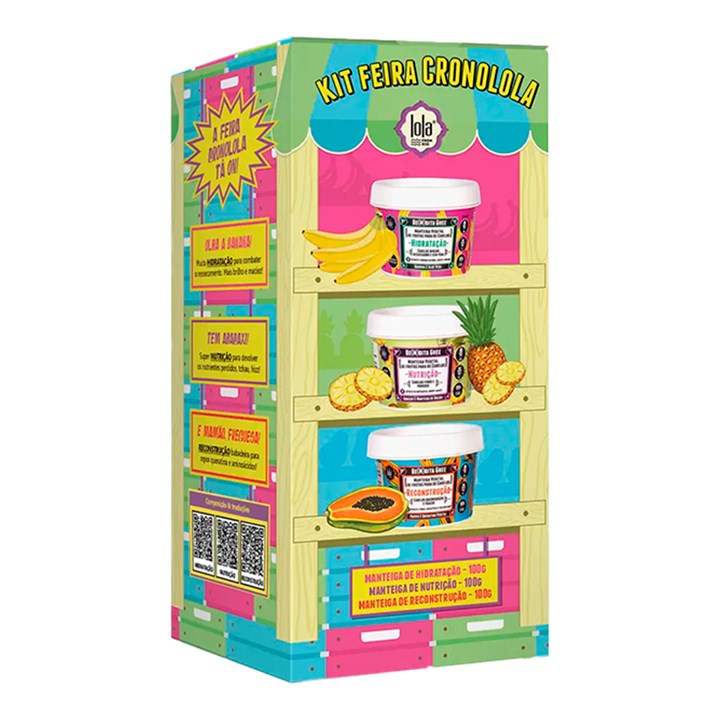Lola Be(m)dita Ghee - Kit Máscara Capilar de Banana e Aloe Vera 100ml + Máscara Capilar de Abacaxi e Manteiga de Bacuri 100ml + Máscara Capilar de Mamão Papaya e Queratina Vegetal 100ml Cronolola